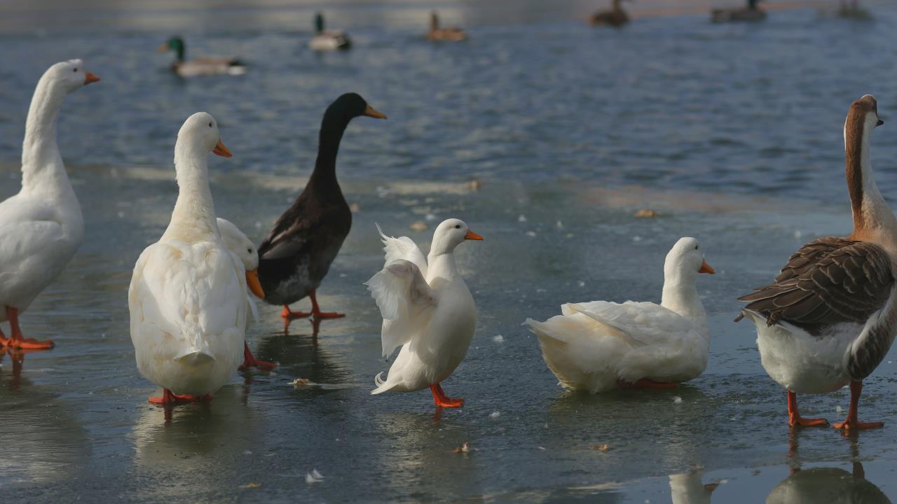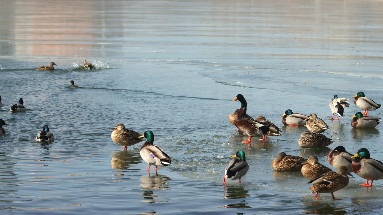 立春已过,气温逐渐回暖,春天的气息愈渐浓厚,丰台区莲花池公园的冰面已经部分融化,吸引了野鸭等鸟禽在此嬉戏觅食,有的比翼齐飞,有的水中嬉戏,有的冰上觅食……为初春时节增添了勃勃生机和自然野趣。