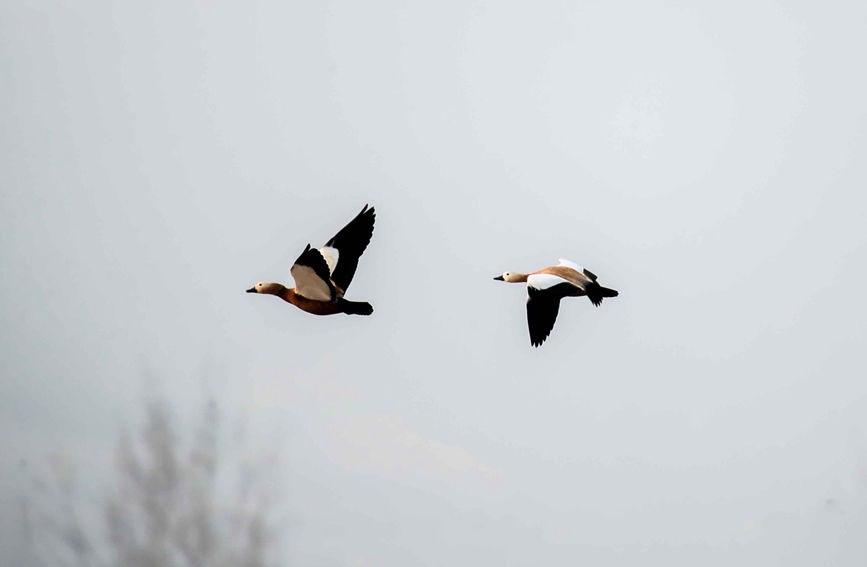 中华秋沙鸭和赤麻鸭等众多鸟类,在碧波中嬉戏、觅食。仇艺娟摄