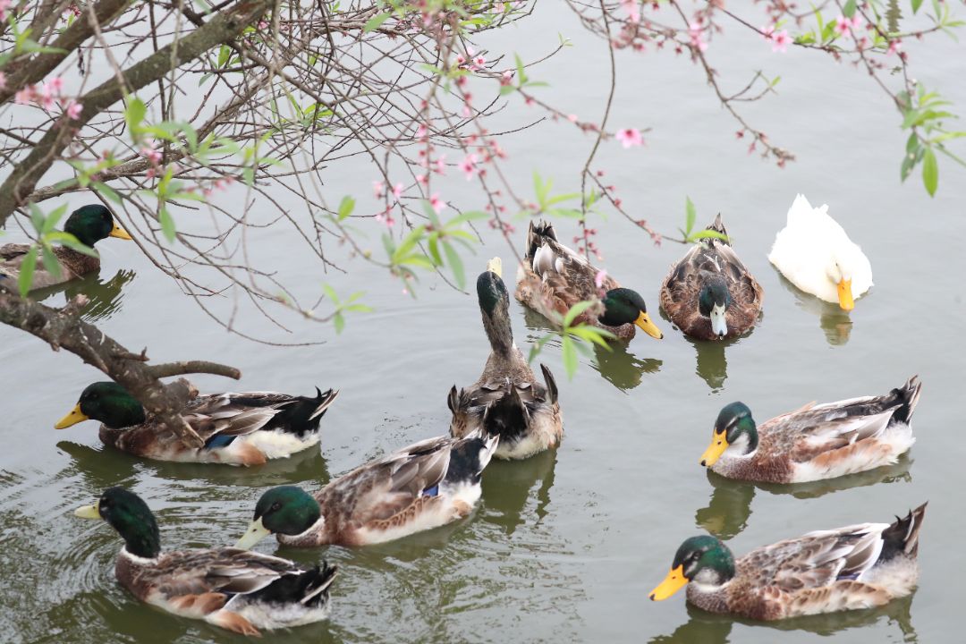 在横州市朝阳大垌,随着春天的来临,田园焕发生机,这里的桃花热烈绽放,水中的鸭子欢乐嬉戏,好一幅“春来桃花开、水暖鸭先知”的春景图。