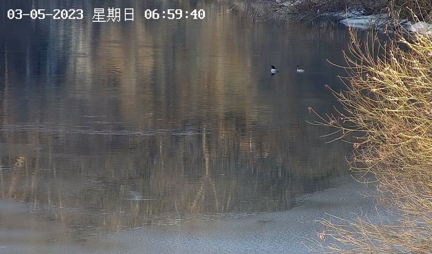 3月5日,在吉林园池湿地国家级自然保护区头道白河流域,园池保护区资源保护科科长韩铭观测到了2对中华秋沙鸭。