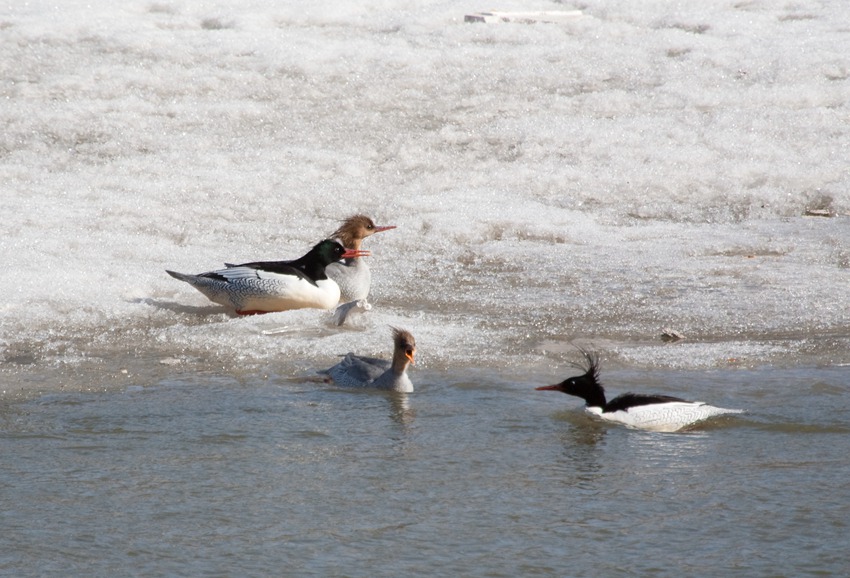 3月4日8时,正在进行水鸟日常巡护的长白山保护局监测站科员栾舰在吉林长白山国家级自然保护区头道站中华秋沙鸭保护基地(二号地)惊喜地发现,1对中华秋沙鸭在水面上欢快地栖息觅食。3月7日,在该地又观测到了3对中华秋沙鸭。经专家对比,第1对中华秋沙鸭和后观测到的3对没有重复,确定此地目前回来4对中华秋沙鸭。