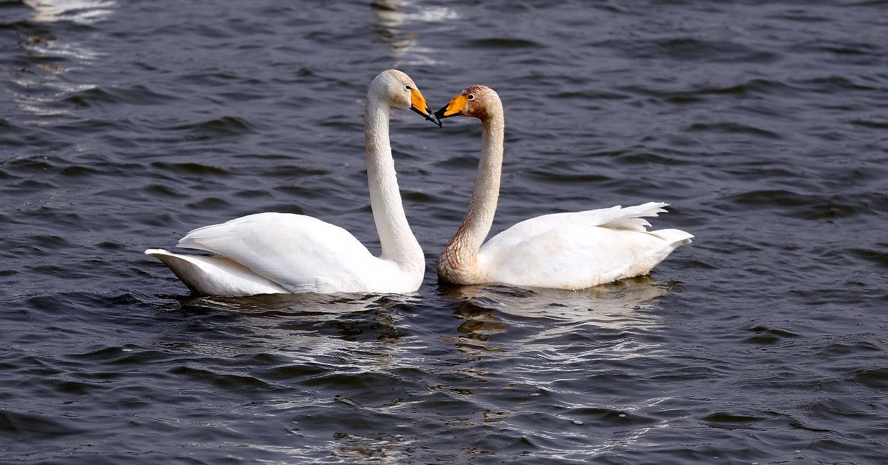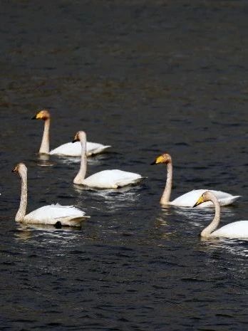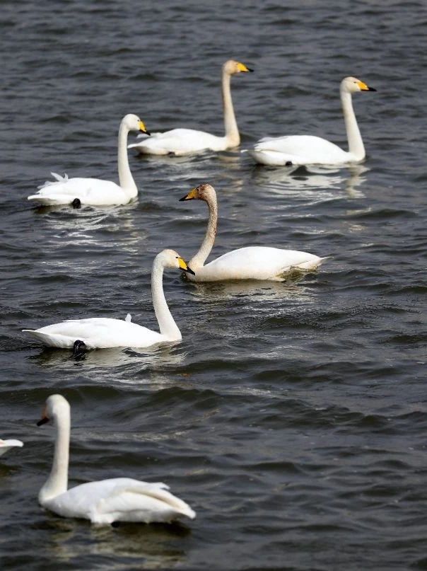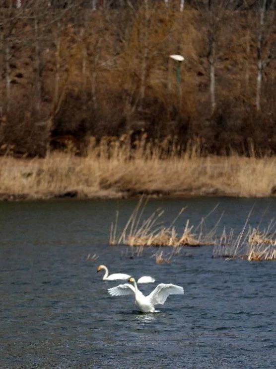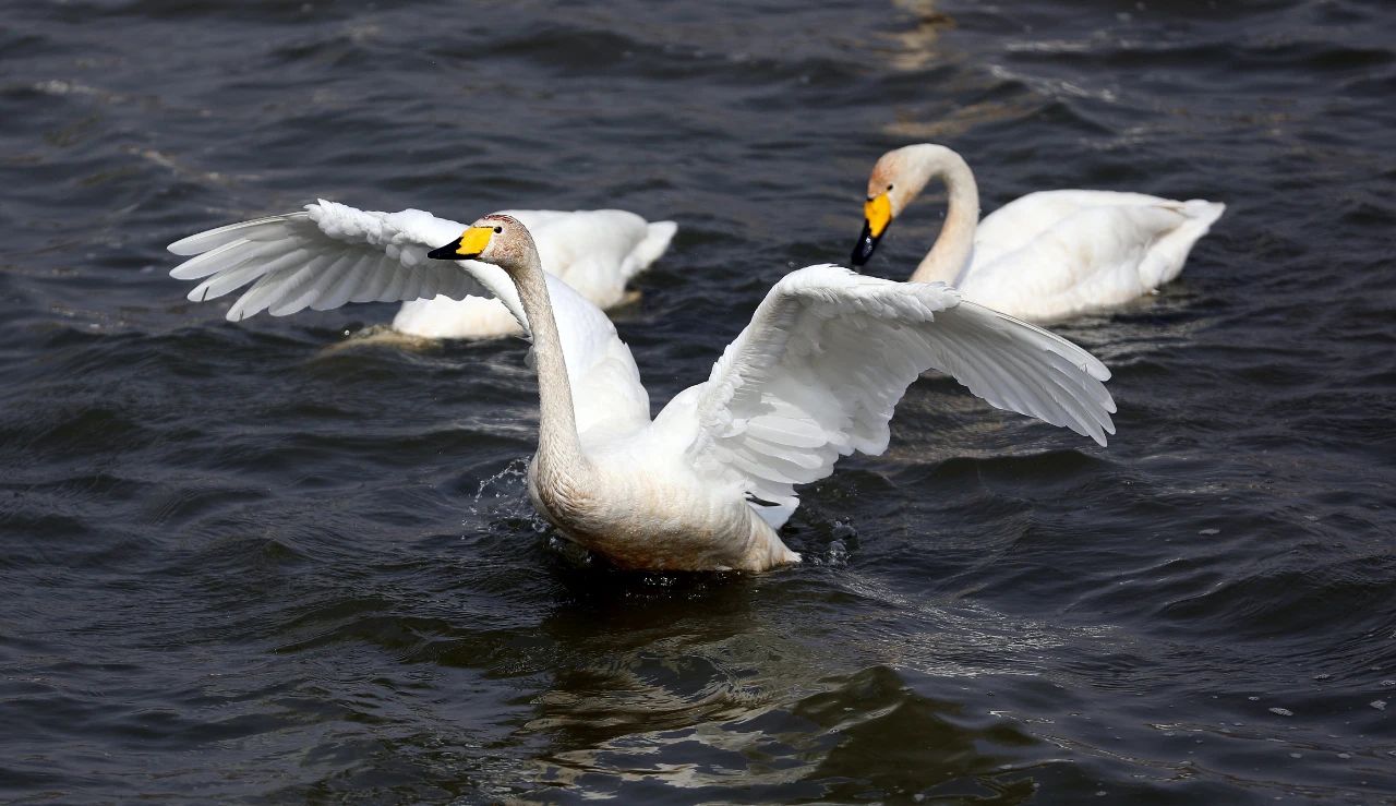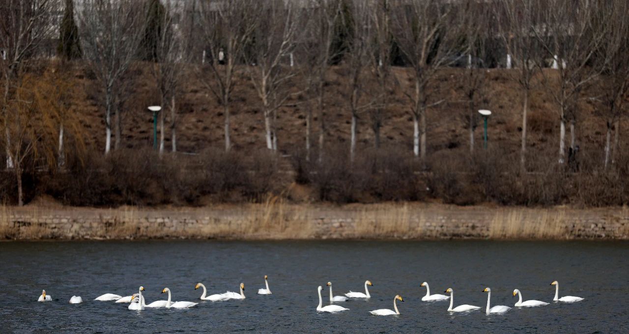 春天里,在辽宁省锦州市女儿河水面上,数十只大天鹅在此栖息逗留,成为一道亮丽的风景。(新华社)