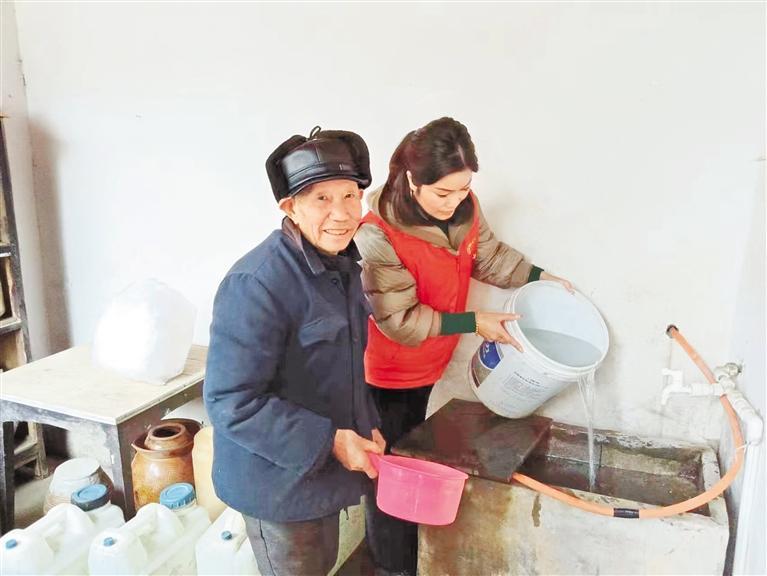 海校街道党员干部为群众送水上门。