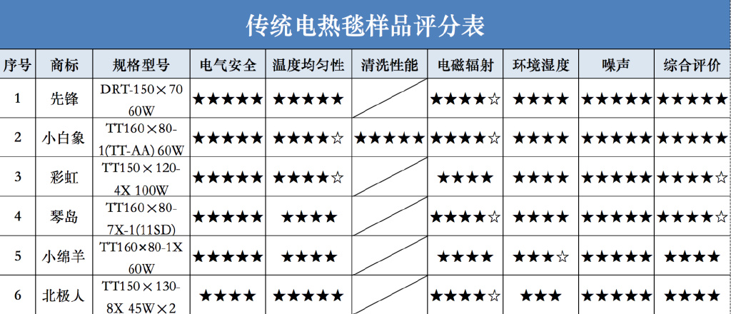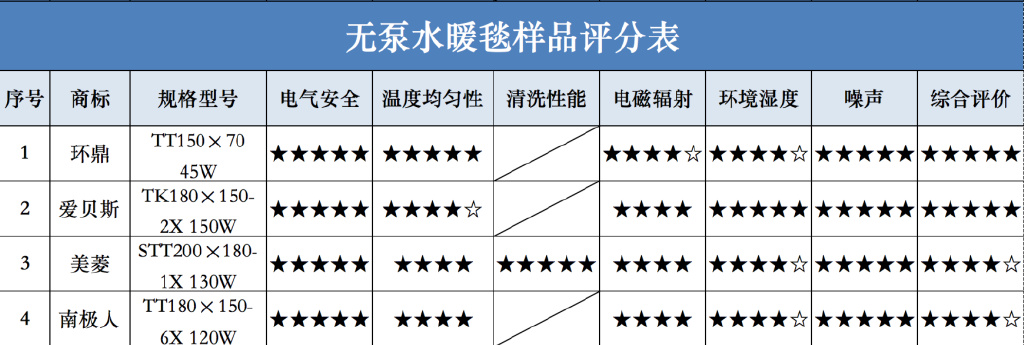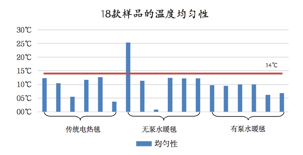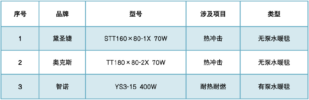 本次样品中,水暖毯在电气安全方面存在的问题更多。18款样品中有3款在耐热耐燃、热冲击试验中不符合国家相关标准要求,存在一定的电气安全隐患,因此不参与本次比较试验的综合评价打分。