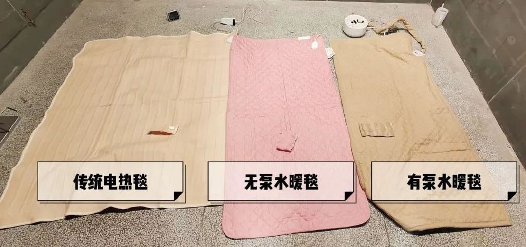 无泵水暖毯:毯体内部在双层螺旋结构发热线的基础上多了一层塑胶管,通过加热丝的作用让管内热水循环保温。