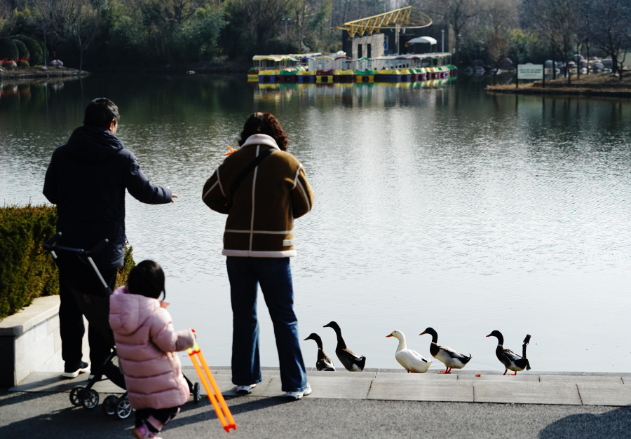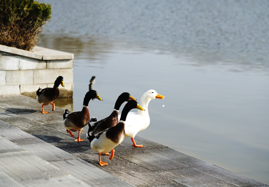 #河南这几天开始回暖至15℃# 【春江水暖鸭先知!#郑州市植物园绿头鸭嬉戏觅食# 】2023年2月14日,数只绿头鸭迈着优雅的步伐,在郑州市植物园岸边觅食嬉戏。