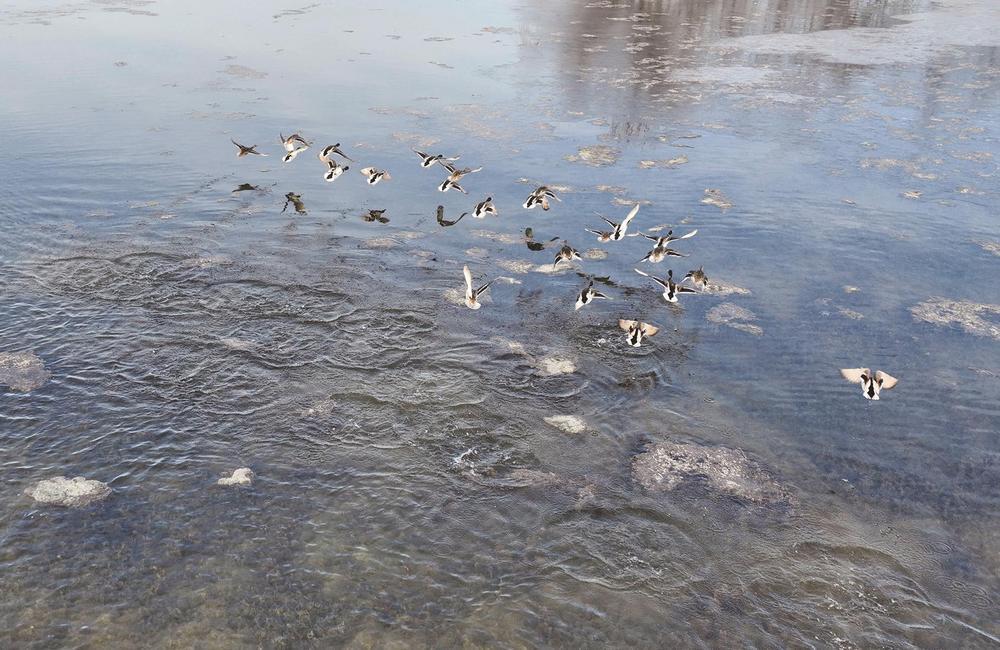 2月14日,在迁西县旧城乡拍摄的滦河水鸟(无人机照片)。