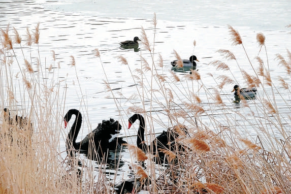 昨天,圆明园福海的水面上,黑天鹅、野鸭子、白骨顶鸡十分活跃。随着气温渐渐升高,湖面的水域也逐渐扩大,给这些水禽提供了良好的嬉戏觅食环境。 本报特约摄影 王希宝