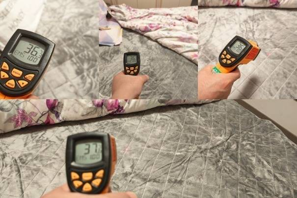 我提前把水温调到38℃以后,睡觉前特意测量了毯面不同位置的温度:靠近进水口处为37℃,而最远端也有36℃,大部分位置都在36~37℃之间,温差不到2℃。整夜体验下来,被窝里始终保持着均匀的温暖,再无往日的“冰火两重天”。