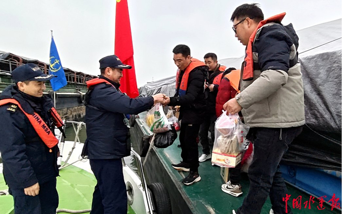 春运,也是广大船员期盼已久的归家时刻。在荆州江陵海事处辖区的郝穴停泊区,随着“长江XX”轮等船舶陆续抵达,第一批返乡船员踏上回家的路。江陵海事处主动对接、前置服务,将安全监管与人文关怀深度融合。海事执法人员每日对到港船舶进行信息摸排和锚泊秩序规范,引导船舶安全、有序集中锚泊。登轮检查时,他们细致排查消防、锚泊设备及船舶水密性等安全隐患,从源头筑牢安全防线。针对部分本地船员长期在船、上岸不便的情况,该处专门调配海巡艇提供“点到点”接送服务,累计帮助10余名船员便捷上岸,其中有人已连续在船工作达6个月。一句“欢迎回家”,一趟暖心接驳,让长江锚地也弥漫起浓浓年味。临别前,海事执法人员不忘反复叮嘱船员注意锚泊值班、防火防冻及环保要求,确保人船平安。