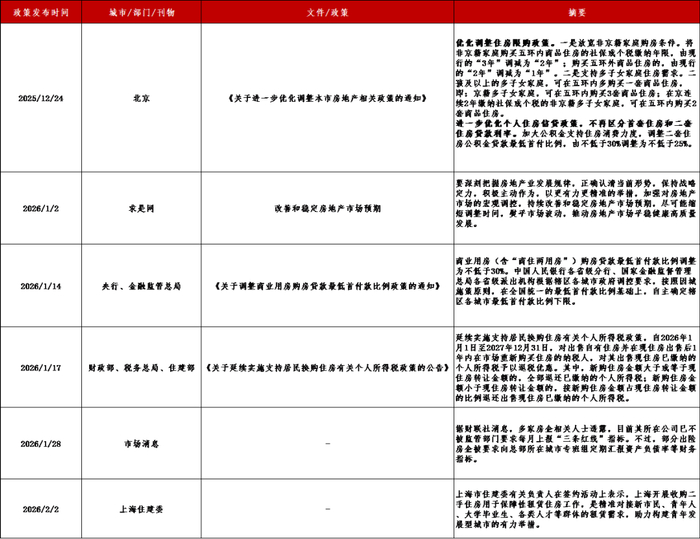 年初以来,房地产市场政策层面呈现积极转向,一系列自上而下、由点及面的举措密集落地,共同指向了“改善和稳定预期”的核心目标。2025年末北京对非京籍家庭及多子女家庭限购政策的实质性优化,并辅以信贷与公积金政策的协同松绑,其信号意义远超地方性调整。进入2026年,政策维度进一步拓宽与深化:《求是》发声明确强调“改善和稳定房地产市场预期”,为市场注入了明确的政策定心丸;金融管理部门则适时调整商业用房首付比例并赋予地方自主空间,体现了在防范风险前提下对特定领域流动性的精准纾解;而居民换购住房个人所得税优惠政策的延续,则直接降低了改善性需求的交易成本,旨在激活市场一二级联动的良性循环。