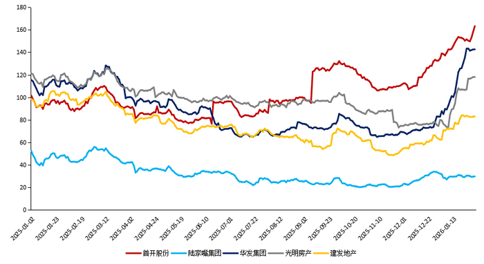 数据来源:Qeubee,经浙商银行整理如上图,WK的风险舆情再度引发市场对地产债下沉风险收益比的重估,恐慌情绪在事件冲击后的三周内迅速扩散,期间不同地产主体的抗跌属性得以体现,以华润置地、陆家嘴金贸为代表的优质央国企,二级成交偏离度在上行3bp左右后迅速稳定回落;而去化压力明显、逆周期扩张房企则受影响显著,二级成交偏离度迅速上行20bp及以上,典例主体如铁建、首开。本轮WK事件对二级地产债的影响,在2025年12月末演绎到极致,随着事件充分发酵、市场参与者对利空反应逐渐钝化,二级市场也逐渐回归理性,尤其针对偏尾部房企的恐慌性抛盘压力也开始减轻。全局来看,地产债二级成交偏离度在2026年1月下旬开始总体收敛,或成为地产债二级企稳修复过程中的信号之一。